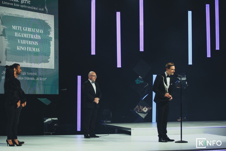 Lietuvos kino centro direktorius Rolandas Kvietkauskas įteikė metų geriausio ilgametražio vaidybinio kino filmo apdovanojimą prodiuseriui Lukas Trimonis ir režisierei Eglei Vertelytei už filmą „Stebuklas“.