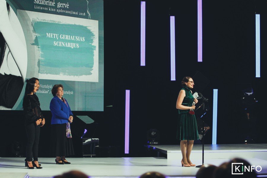 Poetė, scenaristė Violeta Palčinskaitė „Gervę“ už metų geriausią scenarijų įteikė Eglei Vertelytei, už filmą „Stebuklas“.