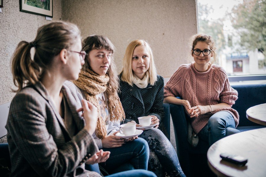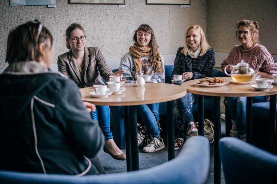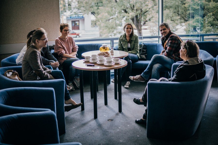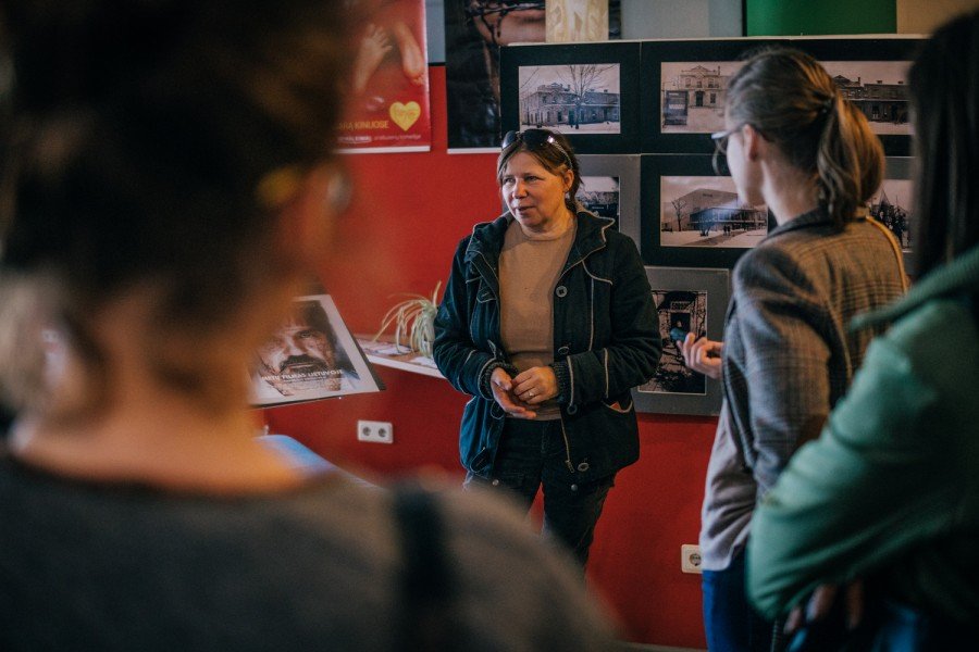 Prie puodelio arbatos ir sausainių kino teatro direktorė Genė Pučinskienė papasakojo apie kino teatro istoriją ir įdomesnius kino teatro laikotarpius.