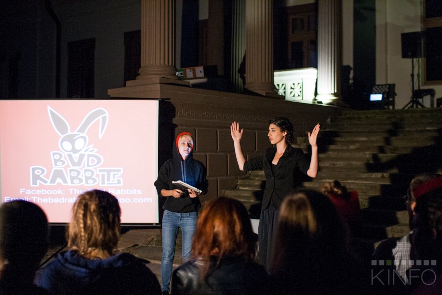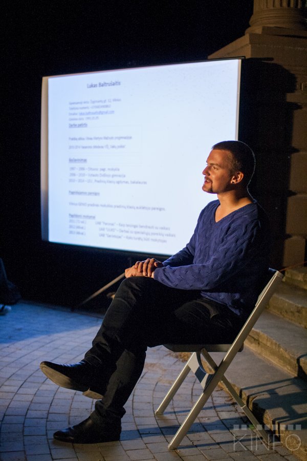 Bet viskas prasidėjo nuo to, jog šiemet galvojome, kokią temą imti, ir kažkas pasiūlė padaryti kino virtuvę. Neva sujungti su patiekalų gaminimu iš kino, bet kalbėti, kas vyksta. Bet žmonės norėtų labiau pažinti kino gamybos procesą. Tai mes ir sugalvojome pabandyti tokią tema, kad profesionalai, kino operatoriai leistų mums pažiūrėti į techniką.
