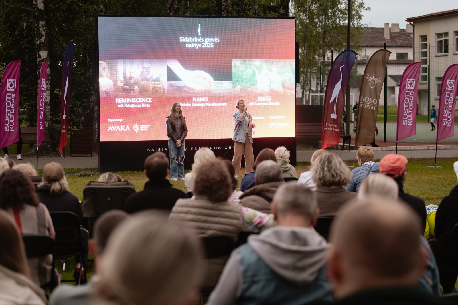 Vakaro atmosferą palaiko ir filmus pristato renginio vedėjos – „Sidabrinių gervių naktų“ žiūrovams jau pažįstamos teatro, kino bei televizijos aktorės Sandra Daukšaitė-Petrulėnė ir Emilija Latėnaitė.